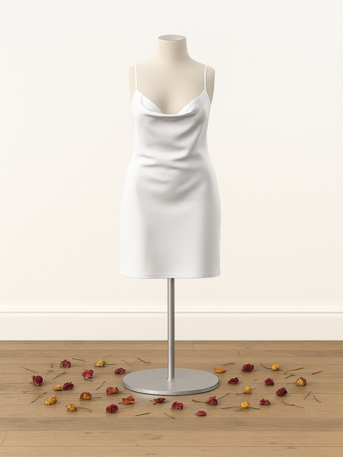 A little drape, a little danger. This cowl-front mini dress in lightweight Tencel looks like romance but acts like chaos. Flowy, flirty, and one wardrobe malfunction away from going viral. She’s a wildflower with a “do not pick” sign—and she means it.
